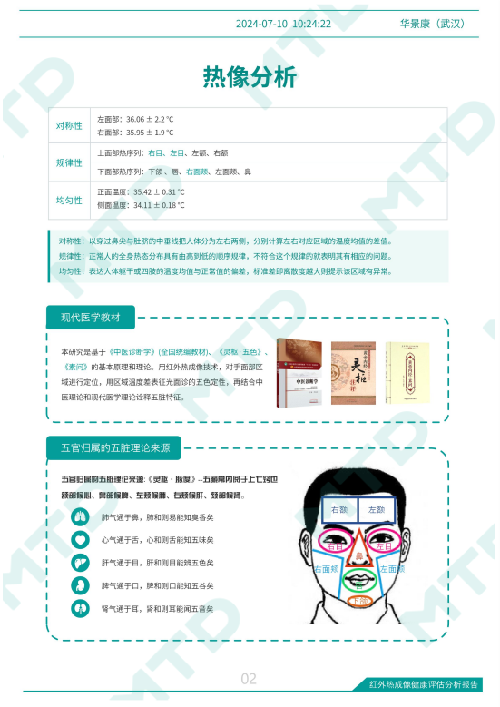 第二页:从对称性、均匀性等维度分析面部热态数据,为后续判断提供基础。