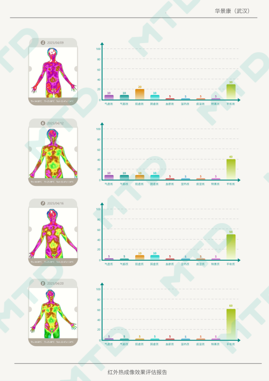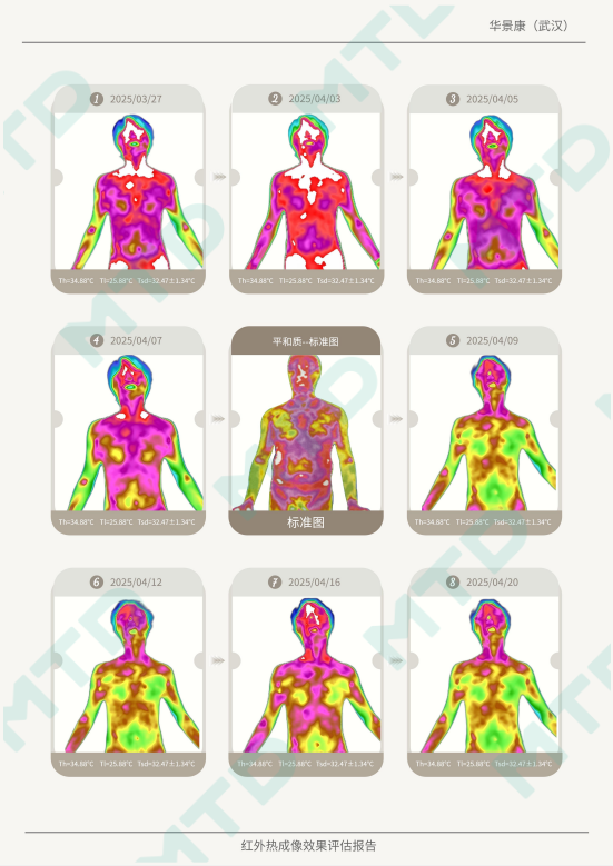 落地流程:① 检测:精准识别脾胃虚寒、宫寒等寒湿问题,为热灸干预提供依据;② 调理:锁定气血不畅部位,结合体质分析开展腹部热疗、腰部督脉灸;③ 验证:热疗前后对比报告显示温度提升,搭配客户 “畏寒减轻、经期改善” 的体感反馈,双维度证明效果。