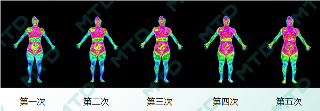 首页:最高可呈现 8 次不同时间段的半身热图对比,清晰展现检测周期内的身体状态变化。