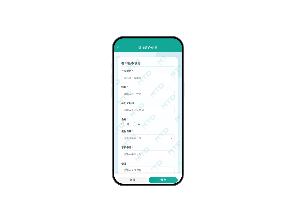 • 手机端操作:打开手机端程序,扫描设备界面的二维码完成设备绑定,随后在手机端点击 “添加客户信息”,填写姓名、性别等带 “*” 的必填项,完成添加后选择对应客户,即可开启设备交互功能。