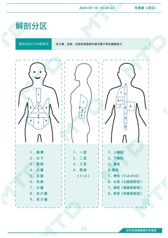第五 – 六页:提供解剖分区模型图及对应部位详细温度数据,帮助用户快速理解解剖位置与温度的关联。