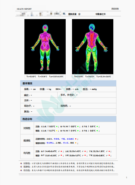 一份西医红外热成像报告,既是对体表温度信号的客观解读,也是连接功能评估与临床干预的桥梁。读懂报告中的温度规律、数据异常及系统提示,可更精准地把握身体潜在风险,为后续健康管理与专科诊疗提供明确方向。