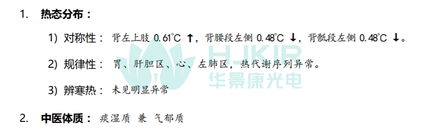华景康红外热像仪的优势正在于“精准识别双重异常+专业报告解读”,它能同步捕捉“功能不足”和“营养匮乏”的热态特征,再通过华景康健康评估报告,结合内置的中医健康评估逻辑,将复杂的热态数据转化为易懂的健康结论,帮你清晰判断调理重点。有了它助力,就能彻底告别盲目进补,让气血调理更有针对性。